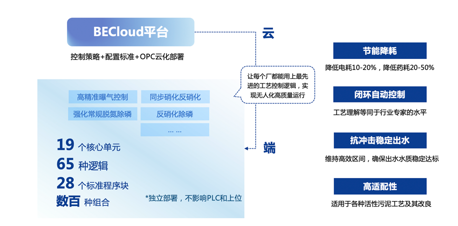 3.贴合水务工艺,强化合规与提质支撑:北控水务的SaaS平台深度融入北控水务多年积累的水务运营经验,内置19个核心工艺单元、65种控制逻辑、28个标准程序块,将污水处理、供水净化等核心工艺的经验模型化、软件化,实现工艺参数的智能调节与优化。同时,平台内置环保合规标准,可自动生成合规报表,实时监测水质、能耗等核心指标,帮助运营主体精准满足监管要求,兼顾提质与低碳需求。